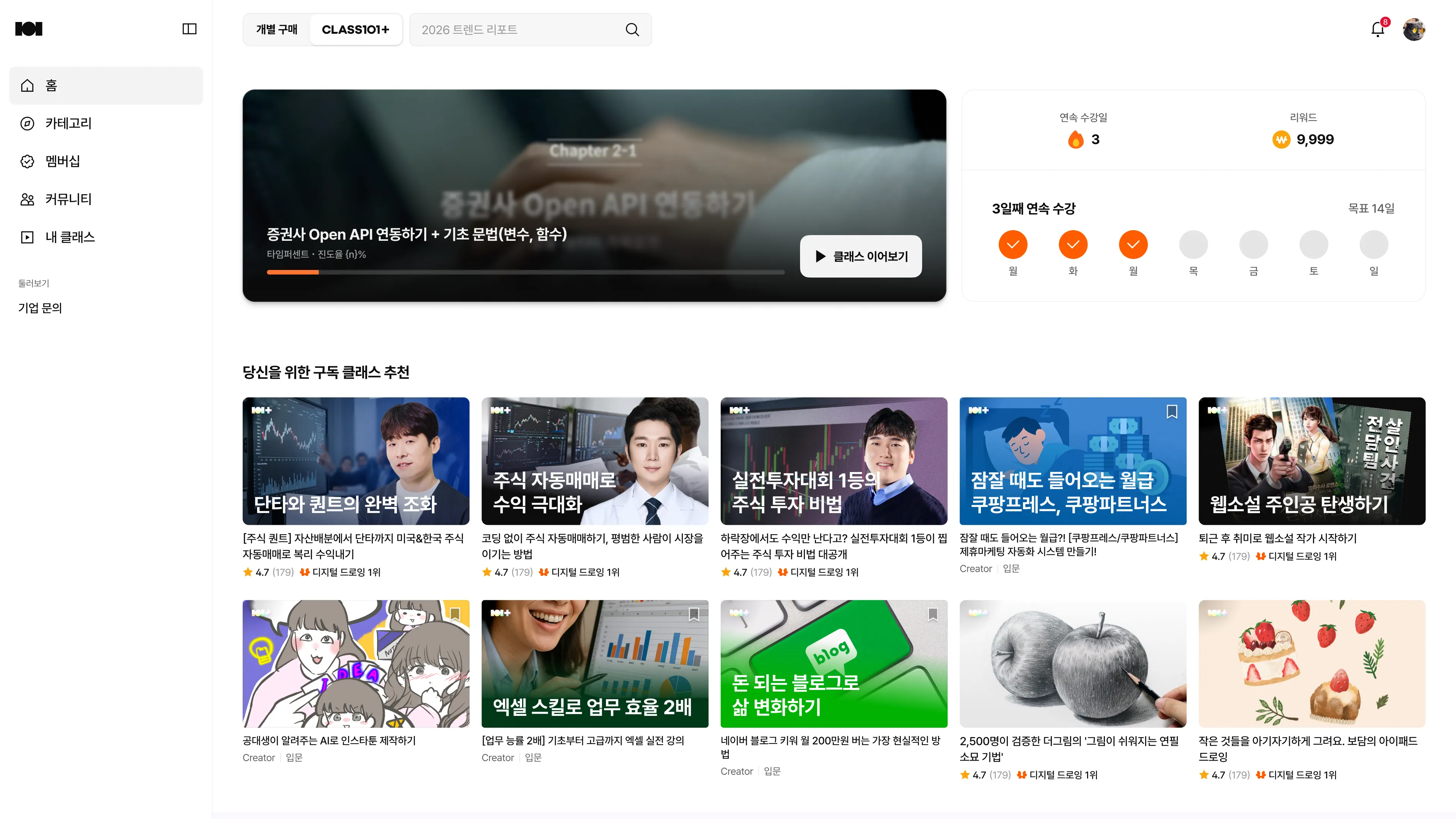 매주 업데이트 되는 최신 강의 홈에서 한눈에 확인